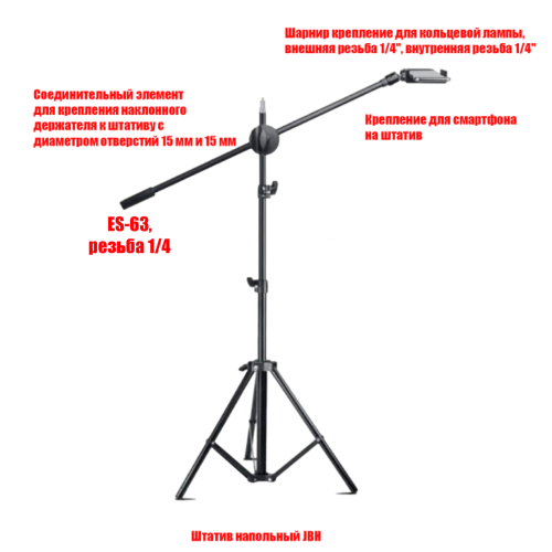 Напольная стойка штатив для съемки сверху JBH-G1 с держателем для телефона и кольцевой лампы